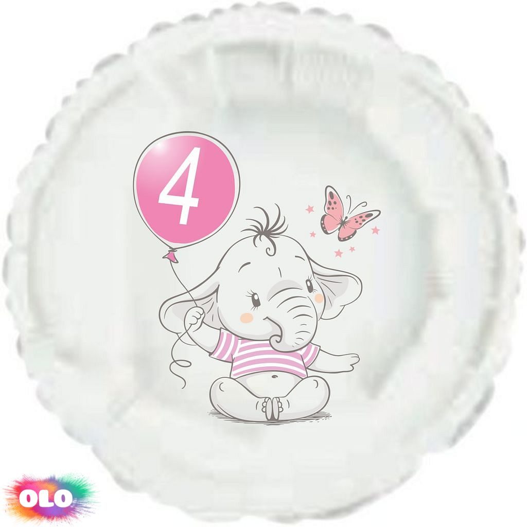 Čtvrté narozeniny - fóliový balónek s růžovým slonem. Krásně vyzdobí dětskou párty. Velikost nabízených balónků je 42 cm.Je možné nafukovat heliem i vzduchem. Objem 13 litrů. POZOR!!! Všechny námi nabízené fóliové balónky mají samouzavíretelný ventil. V případě nafukování vzduchem, nafukujte ruční pumpou. Po nafouknutí se balonky sami uzavřou. Je možné je taky průběžně přes uzavíratelná ventil dofukovat. Fóliové balónky nabízíme v různých tvarech a barvách. Jsou sice dražší než klasické latexové balónky, ale jejich výhodou je kvalita a nepropustnost. Fóliové balónky nafouknuté vzduchem Vám vydrží několik měsíců bez výrazných změn. V případě, že fóliový balónek nafouknete heliem, můžete počítat s dobou létání přibližně 3-7 dní, přičemž létání balónků ovlivňuje okolní teplota i objem samotného balónku. Balónek má samouzavíratelný ventil, který ihned po nafouknutí zamezí úniku vzduchu popř. helia. Při nafukování vzduchem používejte prosím ruční pumpu popř. brčko na pití. Inspiraci pro Vaší dekoraci najdete na internetovém magazínu www.party-narozeniny.cz.