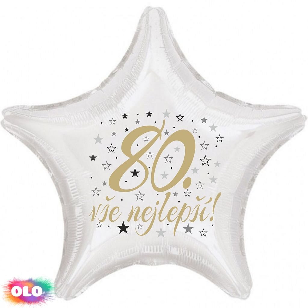 80. narozeniny balónek hvězda Fóliové balónky nabízíme v různých tvarech a barvách. Jsou sice dražší než klasické latexové balónky, ale jejich výhodou je kvalita a nepropustnost. Fóliové balónky nafouknuté vzduchem Vám vydrží několik měsíců bez výrazných změn. V případě, že fóliový balónek nafouknete heliem, můžete počítat s dobou létání přibližně 3-7 dní, přičemž létání balónků ovlivňuje okolní teplota i objem samotného balónku. Balónek má samouzavíratelný ventil, který ihned po nafouknutí zamezí úniku vzduchu popř. helia. Při nafukování vzduchem používejte prosím ruční pumpu popř. brčko na pití. Inspiraci pro Vaší dekoraci najdete na internetovém magazínu www.party-narozeniny.cz. Velikost nabízených balónků je 42 cm.Je možné nafukovat heliem i vzduchem. Objem 13 litrů. POZOR!!! Všechny námi nabízené fóliové balónky mají samouzavíretelný ventil. V případě nafukování vzduchem, nafukujte ruční pumpou. Po nafouknutí se balonky sami uzavřou. Je možné je taky průběžně přes uzavíratelná ventil dofukovat.