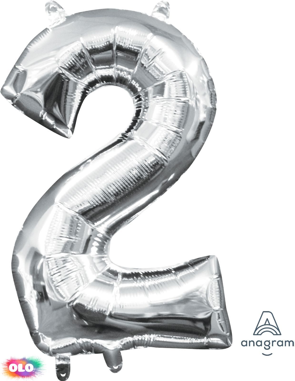 Amscan balónek foliový narozeniny číslo 2 stříbrný 33cm x 20cm