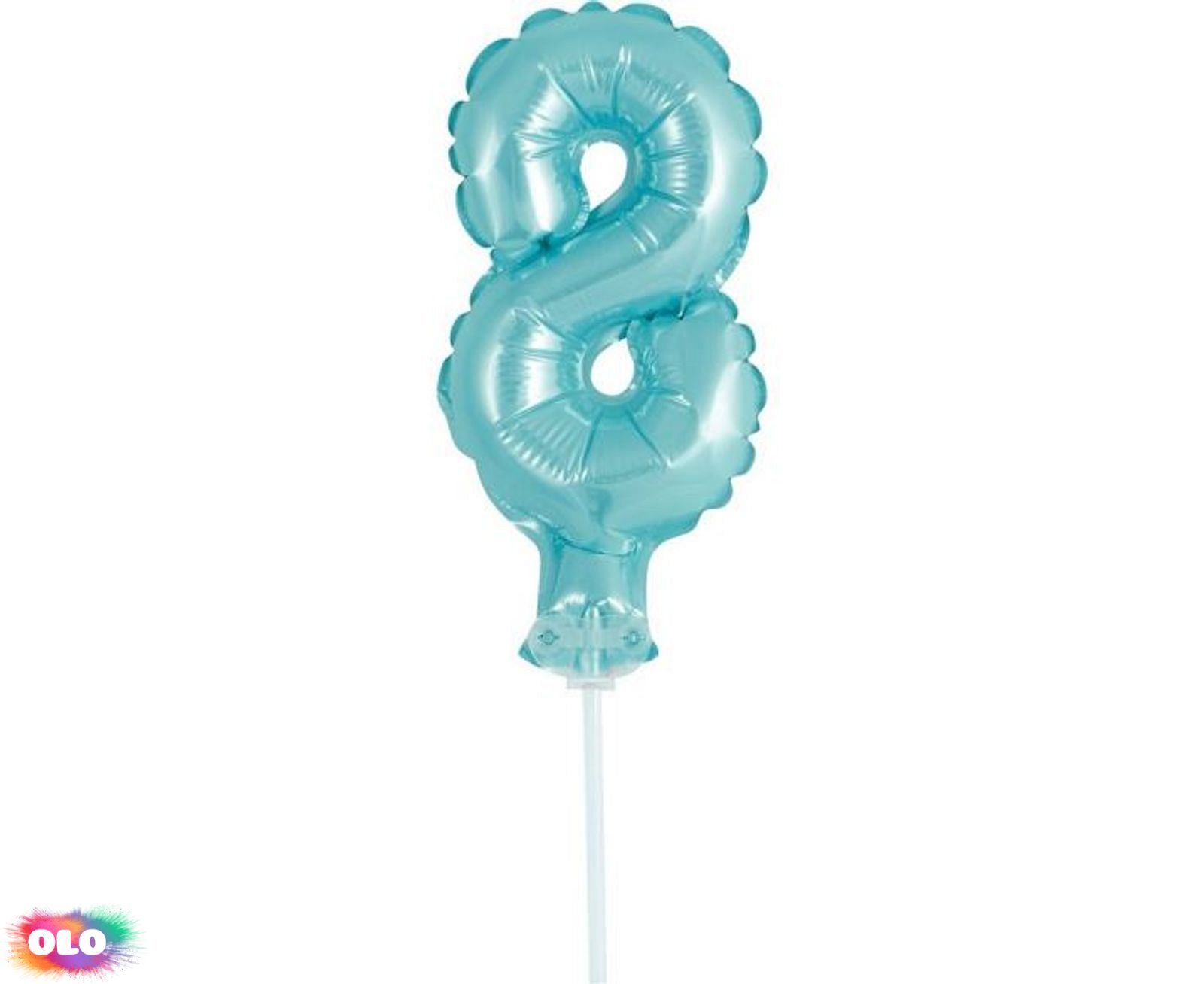Tento rozkošný mini foliový balónek ve tvaru číslice 8 v světlé modré barvě je perfektní dekorací pro váš narozeninový dort. Balónek je snadno nafouknutelný pomocí plastové tyčinky, která je součástí balení, a je určen pouze pro nafukování POUZE VZDUCHEM, takže není vhodný pro héliové plnění. Navzdory své velikosti, dodá balón vašim oslavám ten správný šmrnc a pobaví všechny přítomné.