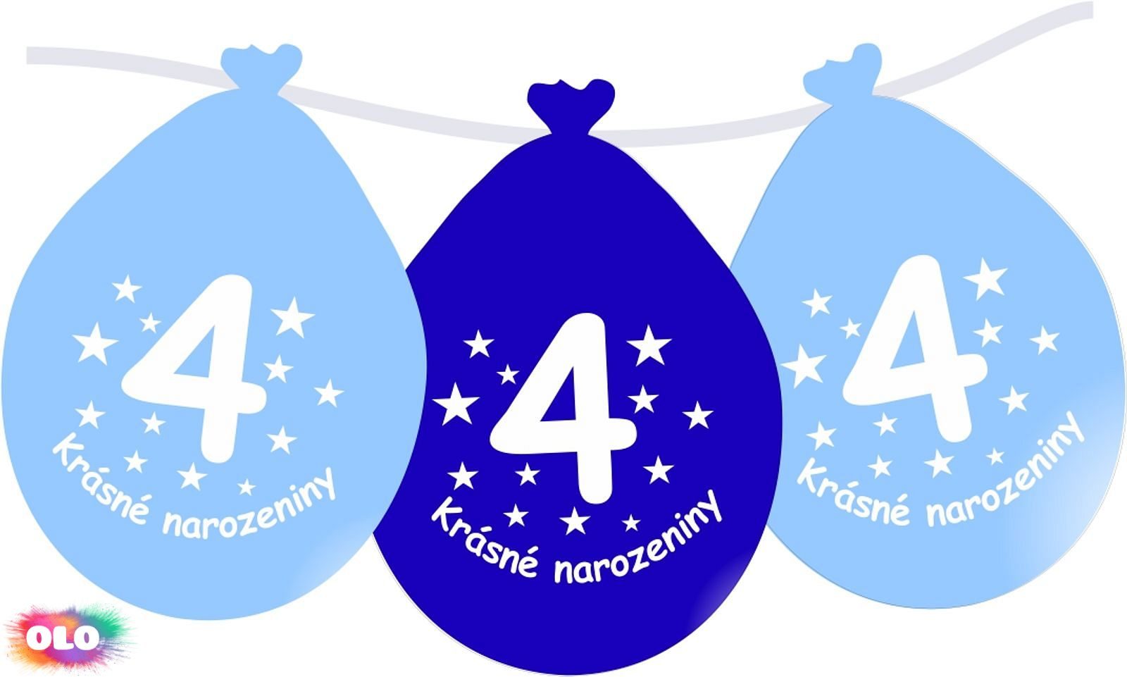 Balónek modrý KRÁSNÉ NAROZENINY číslo 4 visící- 5 ks