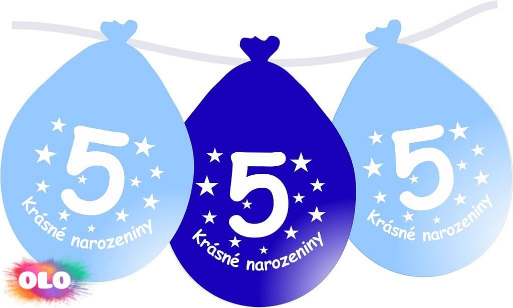 Balónek modrý KRÁSNÉ NAROZENINY číslo 5 visící - 5 ks Balonky visící mají jedinečnou výhodu, že je nemusíte nafukovat heliem, ale stačí balonek nafuknout vzduchem a zavěsit na provázek popř. z nich vytvořit balónkovou girlandu. Více informací ohledně nafukování najdete v sekci "Pumpy a příslušenství".