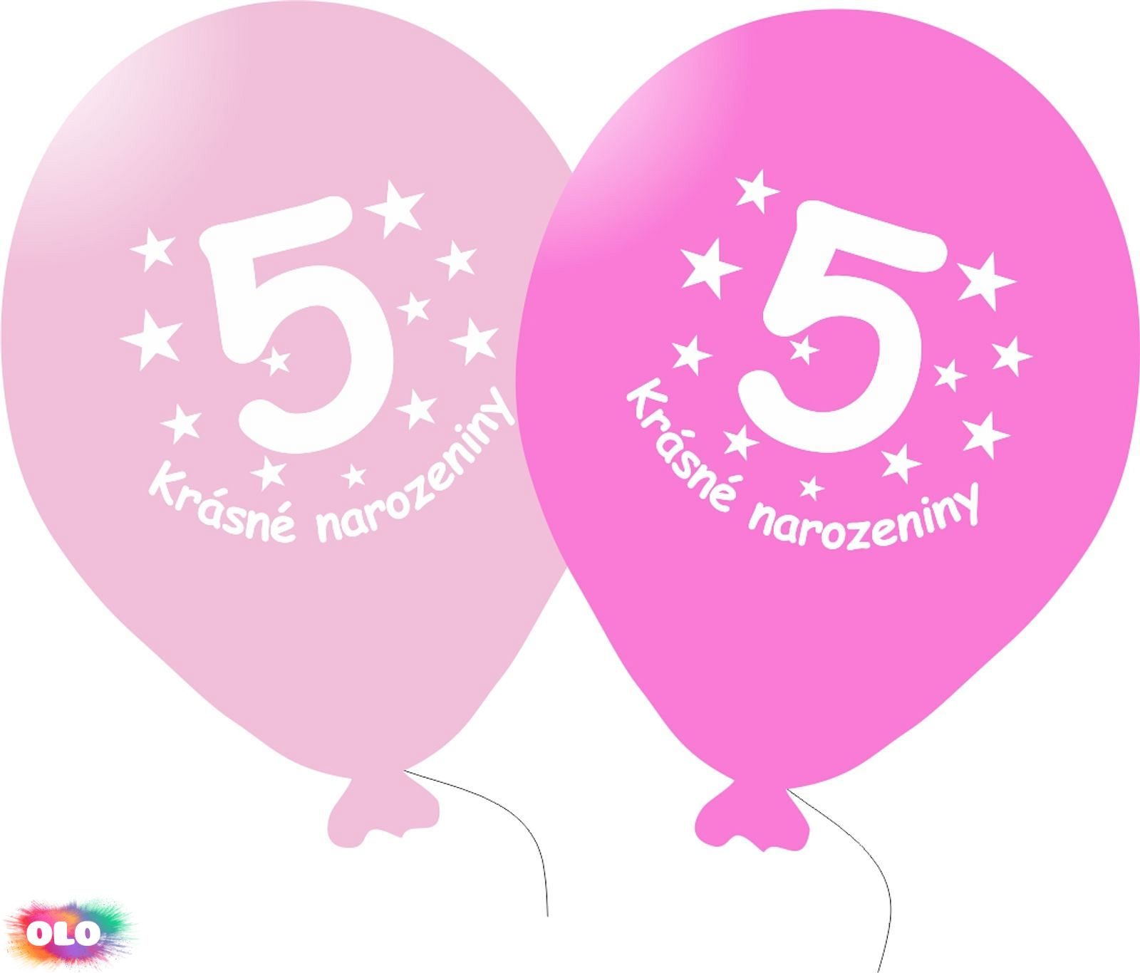 Balónek růžový KRÁSNÉ NAROZENINY číslo 5 - 5 ks