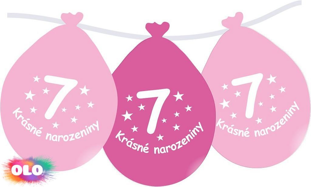 Balónek růžový KRÁSNÉ NAROZENINY číslo 7 visící - 5 ks