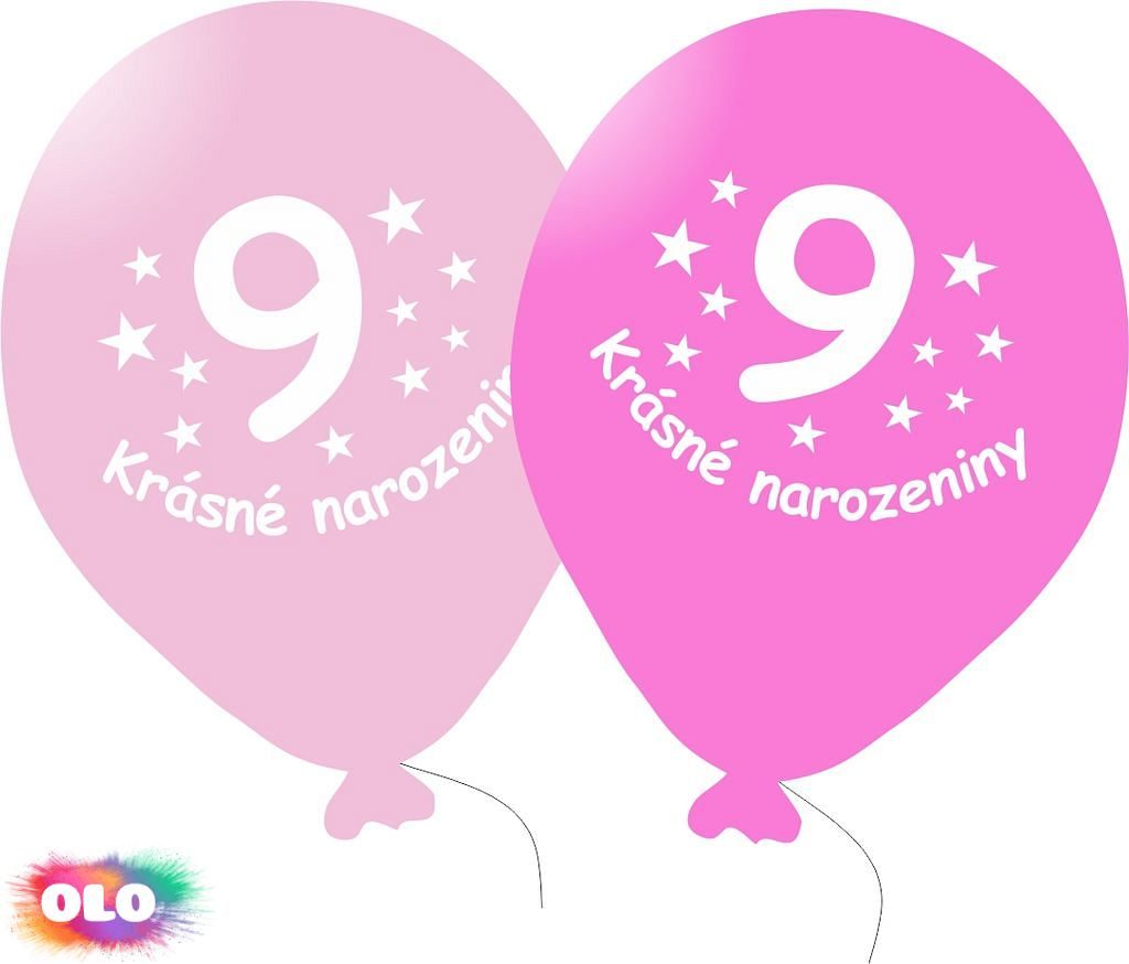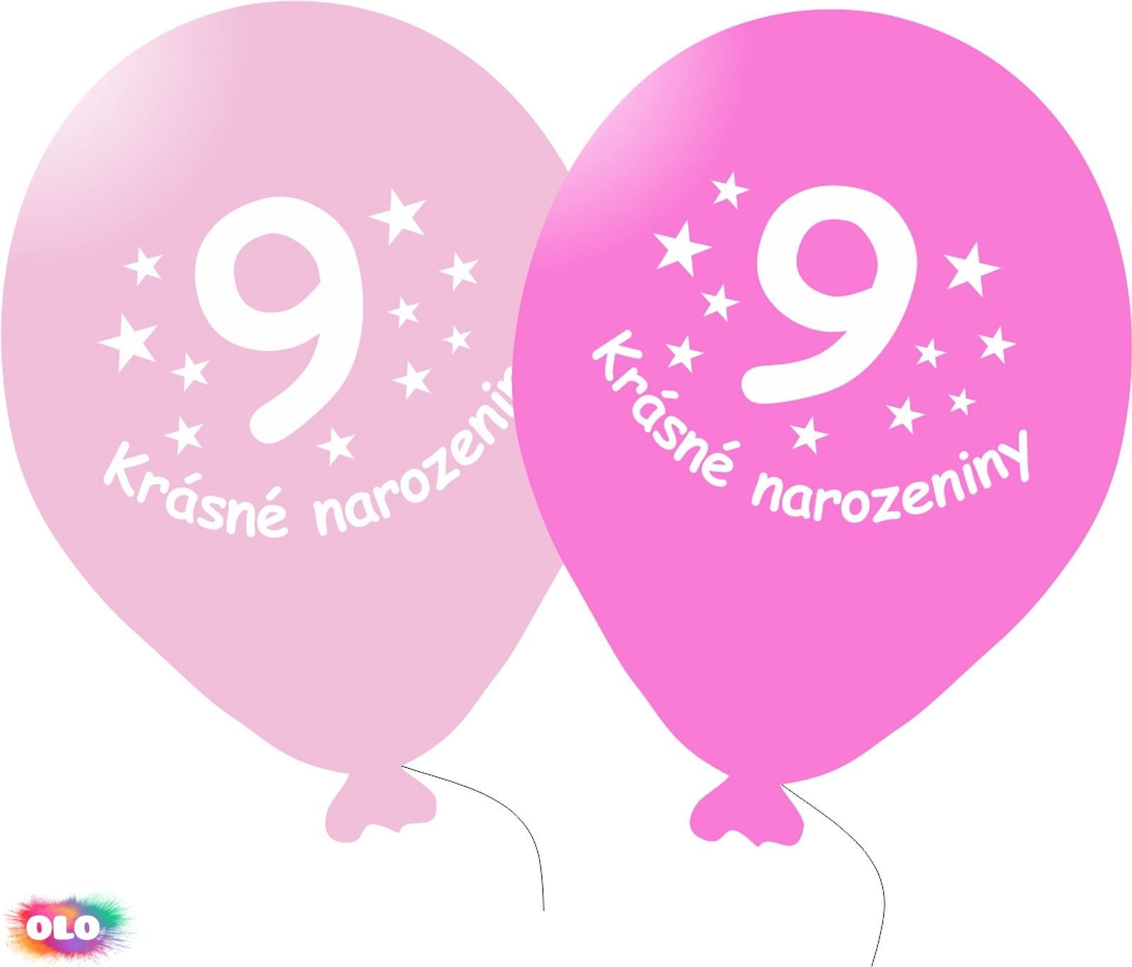 Balónek růžový KRÁSNÉ NAROZENINY číslo 9 - 5 ks