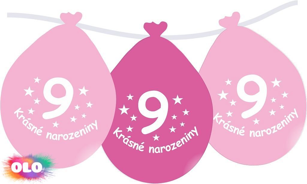 Balónek růžový KRÁSNÉ NAROZENINY číslo 9 visící - 5 ks Balonky barevné s potiskem číslovky - jednoduchá dekorace Vaší narozeninové párty. Pokud není Vámi požadované číslo v nabídce, můžete využít nabídku na mix balonků s univerzálním nápisem Krásné narozeniny anebo "Štastné narozeniny". Kromě obyčejných balonků s českým potiskem máme pro Vás v nabídce i foliové balónky s českým nápisem Krásné narozeniny. Pokud chcete, aby balónky létaly, můžete navštívit sekci Helium anebo Helium set a zde vybrat balení, které Vám bude vyhovovat.. Inspiraci pro Vaší dekoraci najdete na internetovém magazínu www.party-narozeniny.cz. Na narozeniny jsou dalším důležitým doplňkem "Dortové svíčky", popř. "Vystřelovací konfety" a "Dortové fontány". Mix 5 ks balónků, velikost B85 / 27cm /, objem 10l. Originální dekorací jsou balónky s jménem oslavence (latexové i foliové) anebo balonky s fotkou oslavence. Více informací získáte na emailu balonky@.