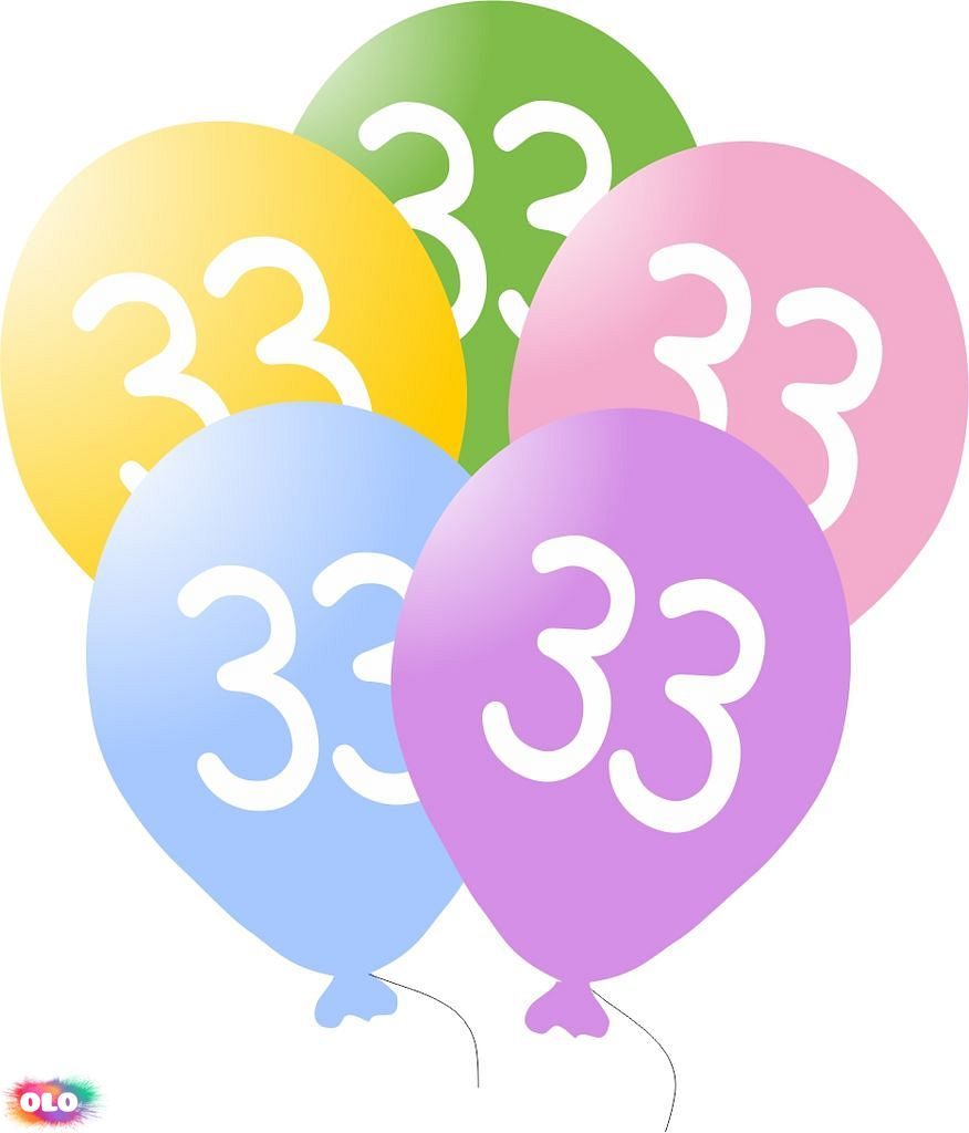 Balónky s číslem 33 Barevné balonky s potiskem 33 - jednoduchá dekorace Vaší narozeninové párty. Pokud není Vámi požadované číslo v nabídce, můžete využít nabídku na mix balonků s univerzálním nápisem Krásné narozeniny anebo "Štastné narozeniny". Kromě obyčejných balonků s českým potiskem máme pro Vás v nabídce i foliové balónky s českým nápisem Krásné narozeniny. Pokud chcete, aby balónky létaly, můžete navštívit sekci Helium anebo Helium set a zde vybrat balení, které Vám bude vyhovovat.. Inspiraci pro Vaší dekoraci najdete na internetovém magazínu www.party-narozeniny.cz. Na narozeniny jsou dalším důležitým doplňkem "Dortové svíčky", popř. "Vystřelovací konfety" a "Dortové fontány". Mix 5 ks balónků, velikost B85 / 27cm /, objem 10l. Originální dekorací jsou balónky s jménem oslavence (latexové i foliové) anebo balonky s fotkou oslavence. Více informací získáte na emailu balonky@.