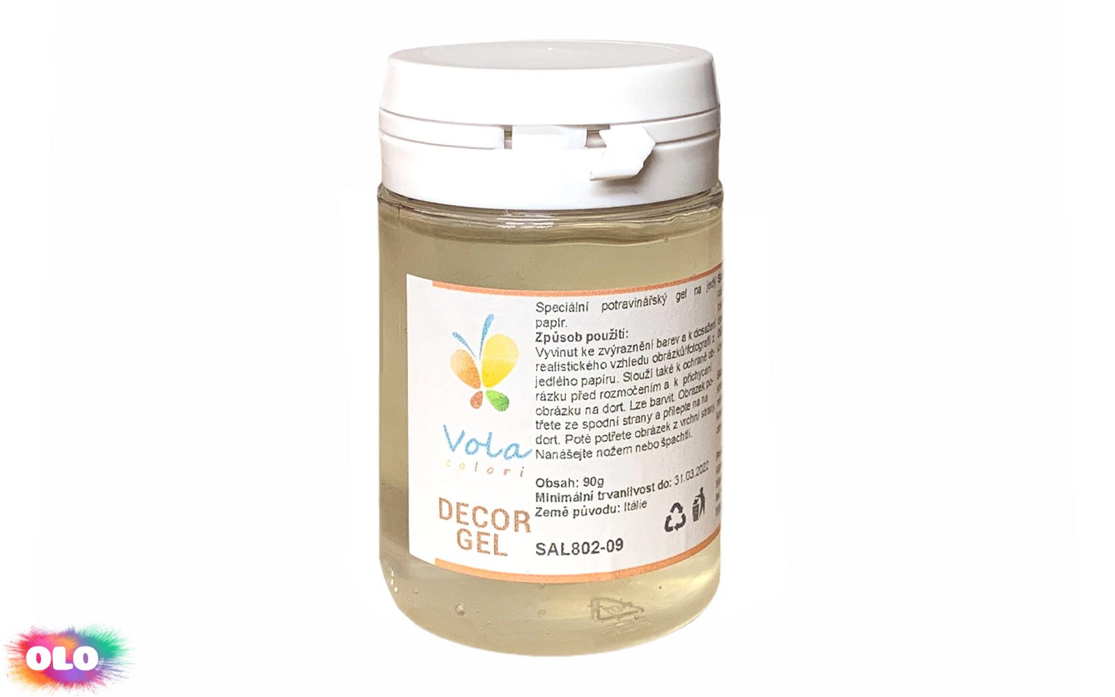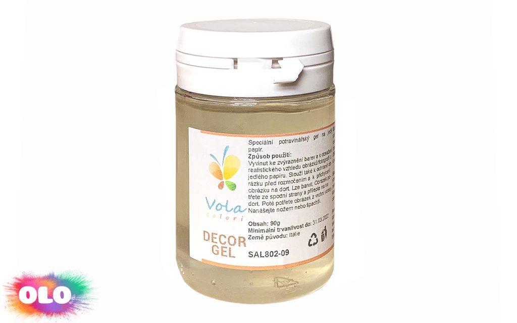 Speciální potravinářský gel na jedlý papír. Vyvinut ke zvýraznění barev a k dosažení realistického vzhledu obrázků/fotografií z jedlého papíru. Slouží také k ochraně obrázku před rozmočením a k přichycení obrázku na dort. Lze barvit.
