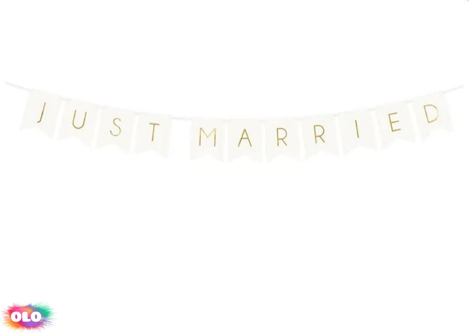 Vyzdobte si svůj svatební den tímto něžným a vkusným nápisem a oznamte světu tu radostnou novinu, že jste novomanželé! Tento krásný banner v bílé barvě se zlatým nápisem je ideální volbou pro každou svatbu.