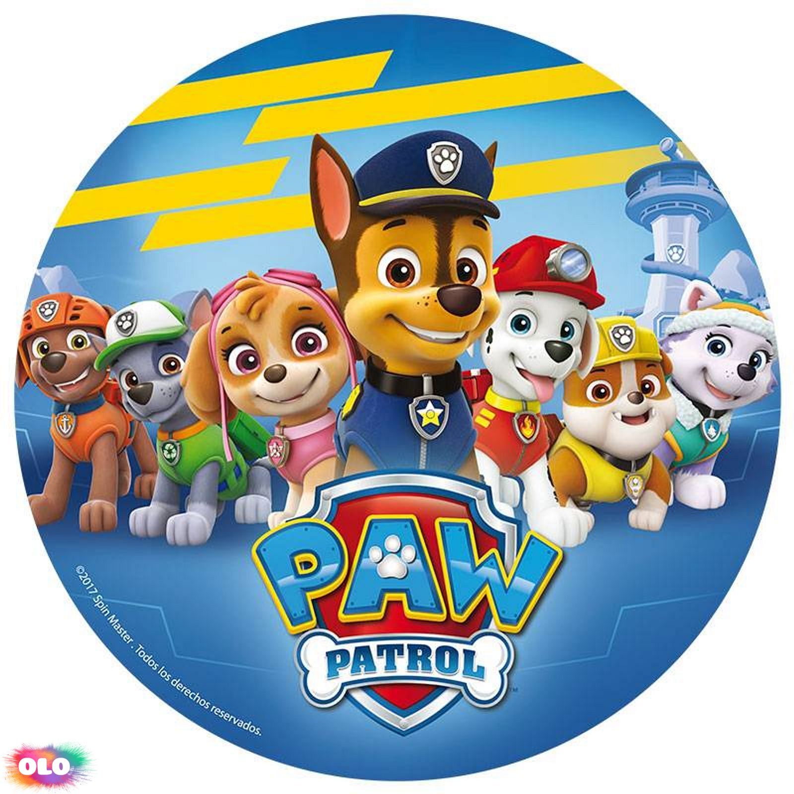 Jedlý papír k jednoduchému a rychlému dekorování dortů. Jedná se o bezlepkový výrobek. Na jeho výrobu jsou použity kvalitní suroviny a potravinářské barvy. Tisk je prováděn ve speciální potravinářské tiskárně. Jedlý dort umožní ozdobení dortu či jiných dezertů. Pokládá se na hotový dort, jehož vrchní díl můžete potřít tenkou vrstvou máslového krému či fixačního jedlého gelu. Papír položte na tuto vrstvu, uhlaďte a potřete opět gelem. Bude lépe držet a rozjasní se jeho barvy. Přikládejte jej na dort minimálně tři hodiny před konzumací, aby byl při servírování dortu měkký. Tento jedlý papír je potištěn motivem tlapkové patroly. Průměr 20 cm.