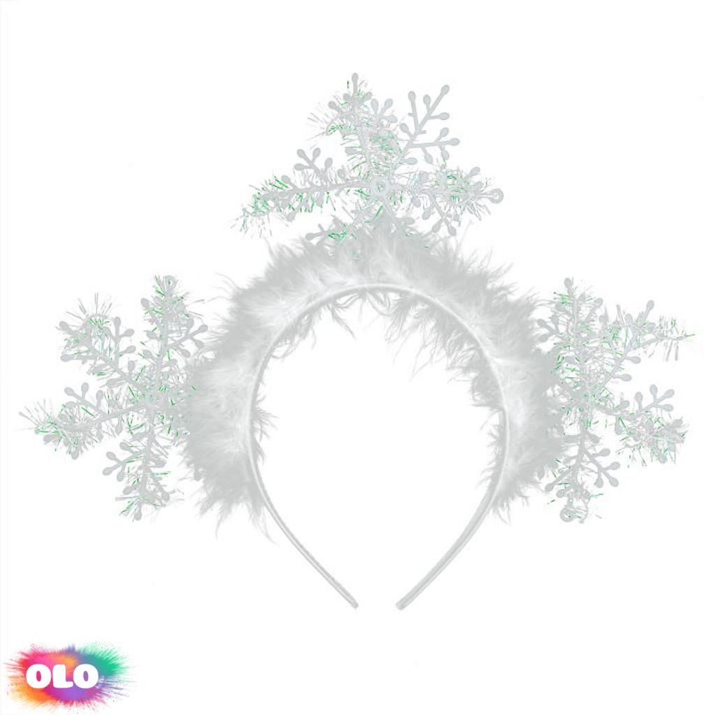 Krásná korunka vločka se stane výrazným doplňkem pro každou malou princeznu na dětském karnevalu. Je bohatě zdobena sněhovými vločkami a doplněna jemným bílým peřím, které dodává na eleganci. Nasazením této korunky na hlavu se každá dívka promění v pohádkovou postavu a může si užít kouzelný vánoční večírek.
