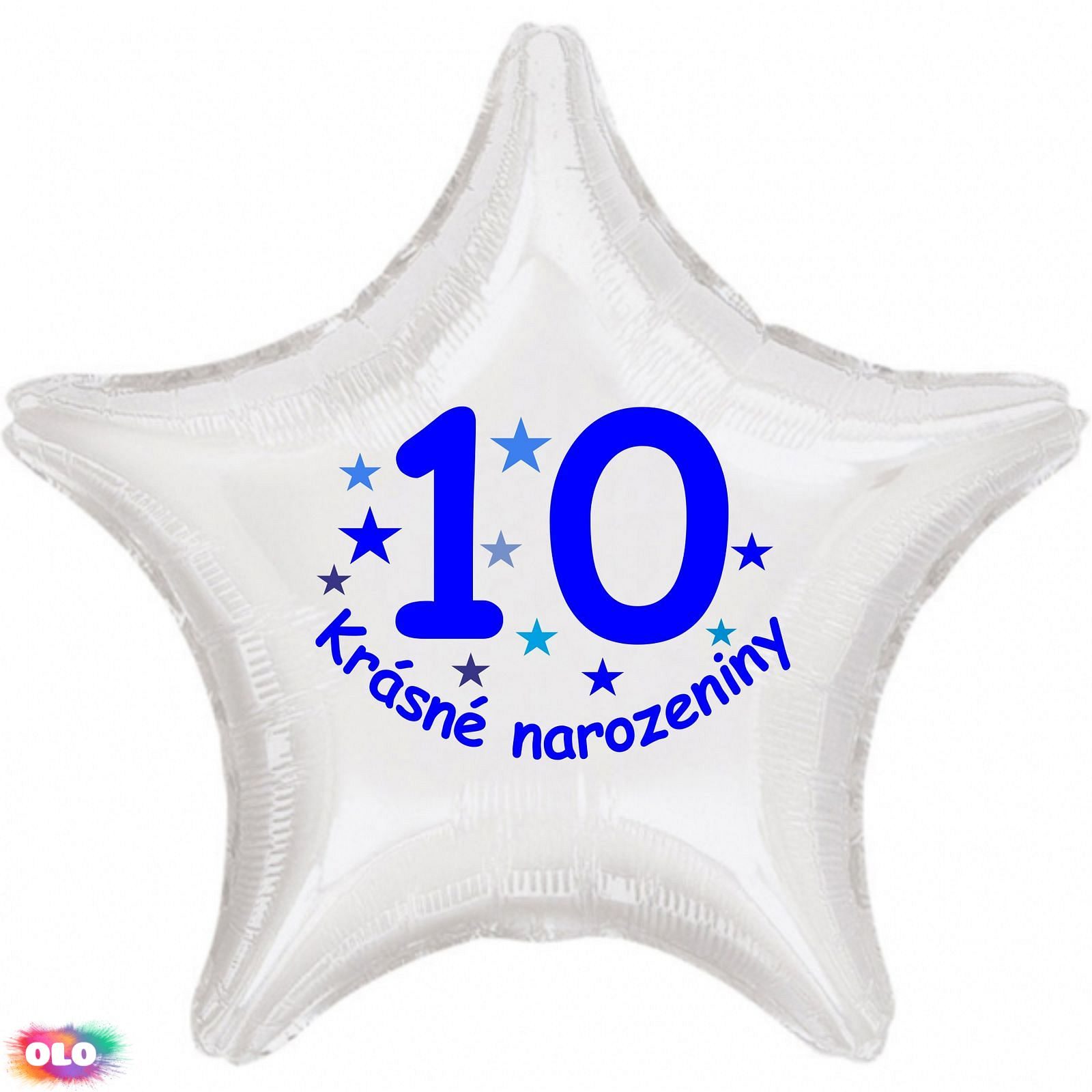 Krásné 10. narozeniny fóliový balónek hvězda pro kluky Fóliové balónky nabízíme v různých tvarech a barvách. Jsou sice dražší než klasické latexové balónky, ale jejich výhodou je kvalita a nepropustnost. Fóliové balónky nafouknuté vzduchem Vám vydrží několik měsíců bez výrazných změn. V případě, že fóliový balónek nafouknete heliem, můžete počítat s dobou létání přibližně 3-7 dní, přičemž létání balónků ovlivňuje okolní teplota i objem samotného balónku. Balónek má samouzavíratelný ventil, který ihned po nafouknutí zamezí úniku vzduchu popř. helia. Při nafukování vzduchem používejte prosím ruční pumpu popř. brčko na pití. Inspiraci pro Vaší dekoraci najdete na internetovém magazínu www.party-narozeniny.cz. Velikost nabízených balónků je 42 cm.Je možné nafukovat heliem i vzduchem. Objem 13 litrů. POZOR!!! Všechny námi nabízené fóliové balónky mají samouzavíretelný ventil. V případě nafukování vzduchem, nafukujte ruční pumpou. Po nafouknutí se balonky sami uzavřou. Je možné je taky průběžně přes uzavíratelná ventil dofukovat.