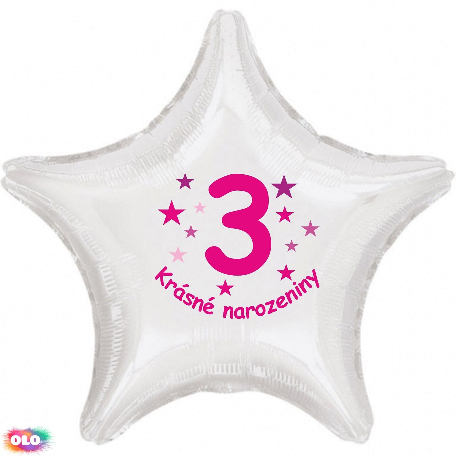 Krásné 3. narozeniny fóliový balónek hvězda pro holky Fóliové balónky nabízíme v různých tvarech a barvách. Jsou sice dražší než klasické latexové balónky, ale jejich výhodou je kvalita a nepropustnost. Fóliové balónky nafouknuté vzduchem Vám vydrží několik měsíců bez výrazných změn. V případě, že fóliový balónek nafouknete heliem, můžete počítat s dobou létání přibližně 3-7 dní, přičemž létání balónků ovlivňuje okolní teplota i objem samotného balónku. Balónek má samouzavíratelný ventil, který ihned po nafouknutí zamezí úniku vzduchu popř. helia. Při nafukování vzduchem používejte prosím ruční pumpu popř. brčko na pití. Inspiraci pro Vaší dekoraci najdete na internetovém magazínu www.party-narozeniny.cz. Velikost nabízených balónků je 42 cm.Je možné nafukovat heliem i vzduchem. Objem 13 litrů. POZOR!!! Všechny námi nabízené fóliové balónky mají samouzavíretelný ventil. V případě nafukování vzduchem, nafukujte ruční pumpou. Po nafouknutí se balonky sami uzavřou. Je možné je taky průběžně přes uzavíratelná ventil dofukovat.