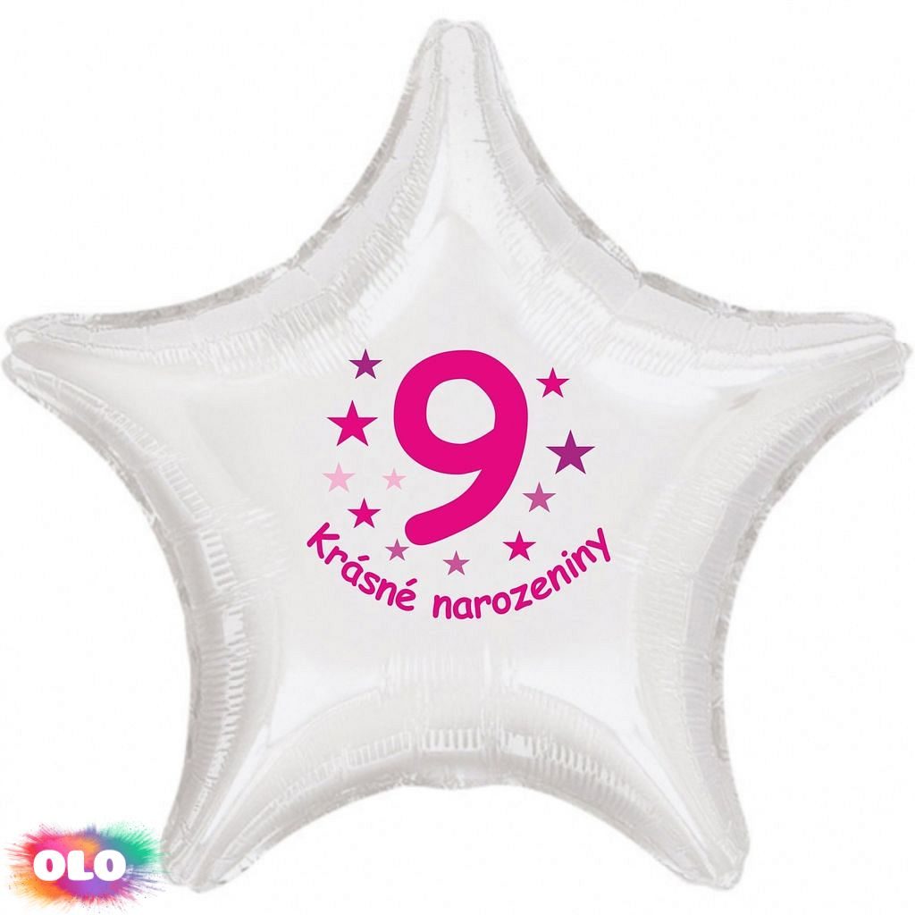 Krásné 9. narozeniny fóliový balónek hvězda pro holky Fóliové balónky nabízíme v různých tvarech a barvách. Jsou sice dražší než klasické latexové balónky, ale jejich výhodou je kvalita a nepropustnost. Fóliové balónky nafouknuté vzduchem Vám vydrží několik měsíců bez výrazných změn. V případě, že fóliový balónek nafouknete heliem, můžete počítat s dobou létání přibližně 3-7 dní, přičemž létání balónků ovlivňuje okolní teplota i objem samotného balónku. Balónek má samouzavíratelný ventil, který ihned po nafouknutí zamezí úniku vzduchu popř. helia. Při nafukování vzduchem používejte prosím ruční pumpu popř. brčko na pití. Inspiraci pro Vaší dekoraci najdete na internetovém magazínu www.party-narozeniny.cz. Velikost nabízených balónků je 42 cm.Je možné nafukovat heliem i vzduchem. Objem 13 litrů. POZOR!!! Všechny námi nabízené fóliové balónky mají samouzavíretelný ventil. V případě nafukování vzduchem, nafukujte ruční pumpou. Po nafouknutí se balonky sami uzavřou. Je možné je taky průběžně přes uzavíratelná ventil dofukovat.