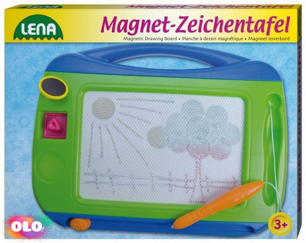Plastová magická tabulka. Obsahuje tužku s kovovým hrotem, 2x razítko. Při kreslení tužkou s kovovým hrotem tabulka mění barvu kresleného obrázku. Jednouché zacházení.