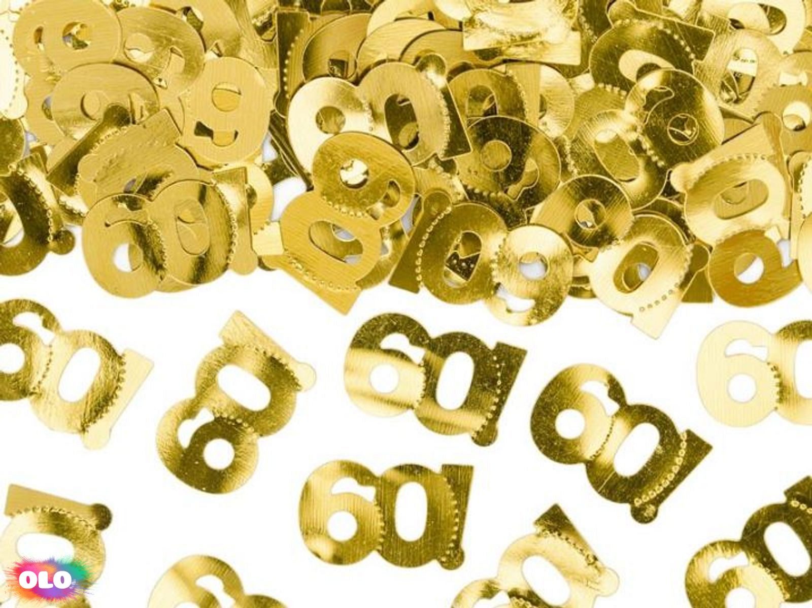 Oslavte šedesátiny stylově s metalickými zlatými konfetami ve tvaru čísla 60. Tento elegantní doplněk přidá vaší oslavě jedinečný třpyt a lesk. Vhodné k dekoraci stolu či jako součást balení dárků. Konfety přinášejí pocit luxusu a slavnostního kouzla.