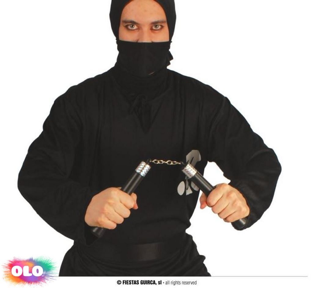 NUNCHAKU -ninja o délce 18 cm je skvělým doplňkem pro každého, kdo se chce stát mistrem bojových umění na maškarním plese nebo stylové párty. Tato replika tradičního japonského nunchaku dodá vašemu kostýmu autentický vzhled a přitáhne pozornost všech kolem.