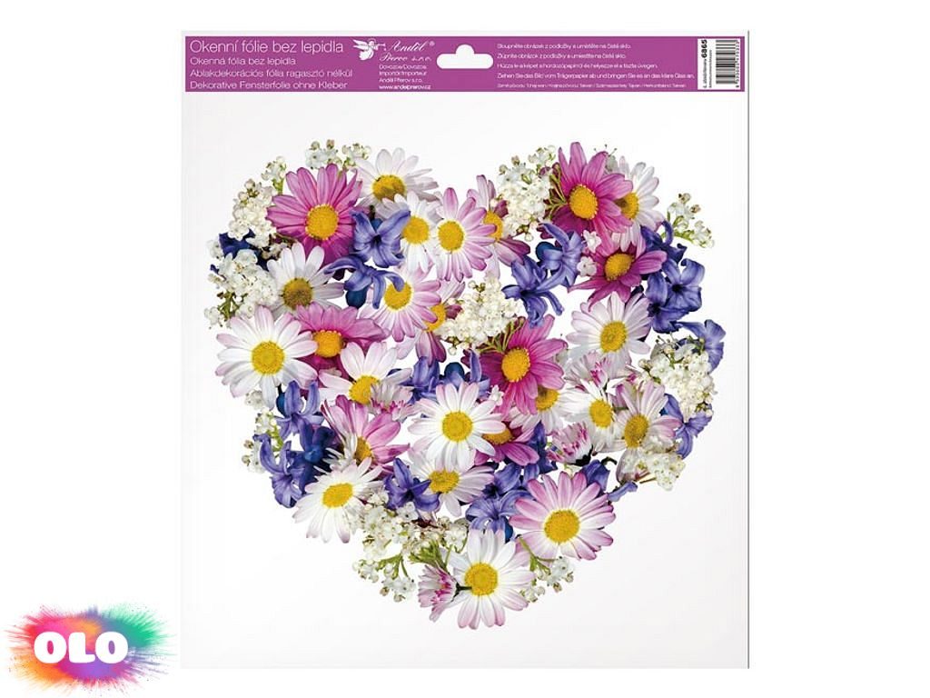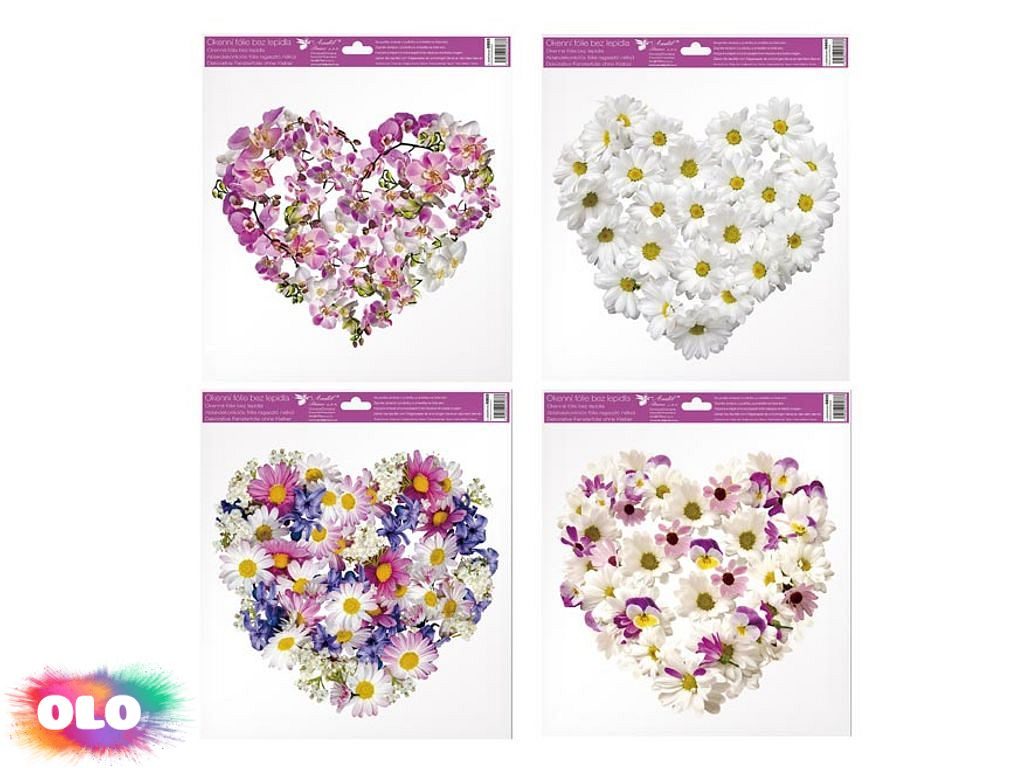 Okenní fólie 6865 srdce z květů 30x33,5 cm