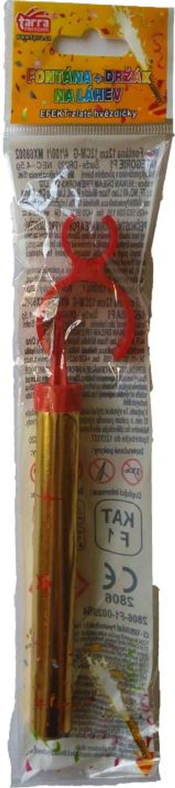 Obohaťte svou oslavu zlatavým leskem s párty fontánou na dort, která potěší všechny hosty jedinečným vizuálním zážitkem. Toto balení obsahuje jeden kus fontány o délce 12 cm, která snadno nahradí tradiční svíčky na dortu. Fontána je opatřena plastovým podstavcem, který umožňuje její bezpečné a snadné uchycení k dortu. Pro originální umístění je k fontáně přiložen držák na láhev, takže ji můžete umístit i na hrdlo oblíbené šumivky.
