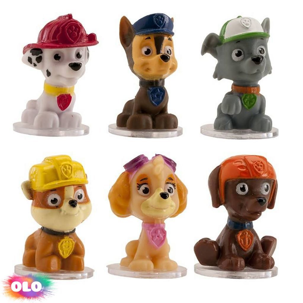 Nejedlá dekorace z Tlapkové patroly. Každá figurka je umístěna na podstavci, je tak dostatečně stabilní. Lze umístit na dort či jakýkoliv dezert i volně na stůl.