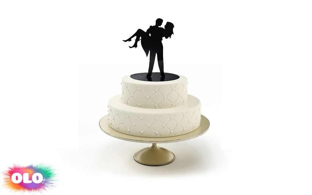 Moderní kovová silueta ženicha a nevěsty na svatební dort.