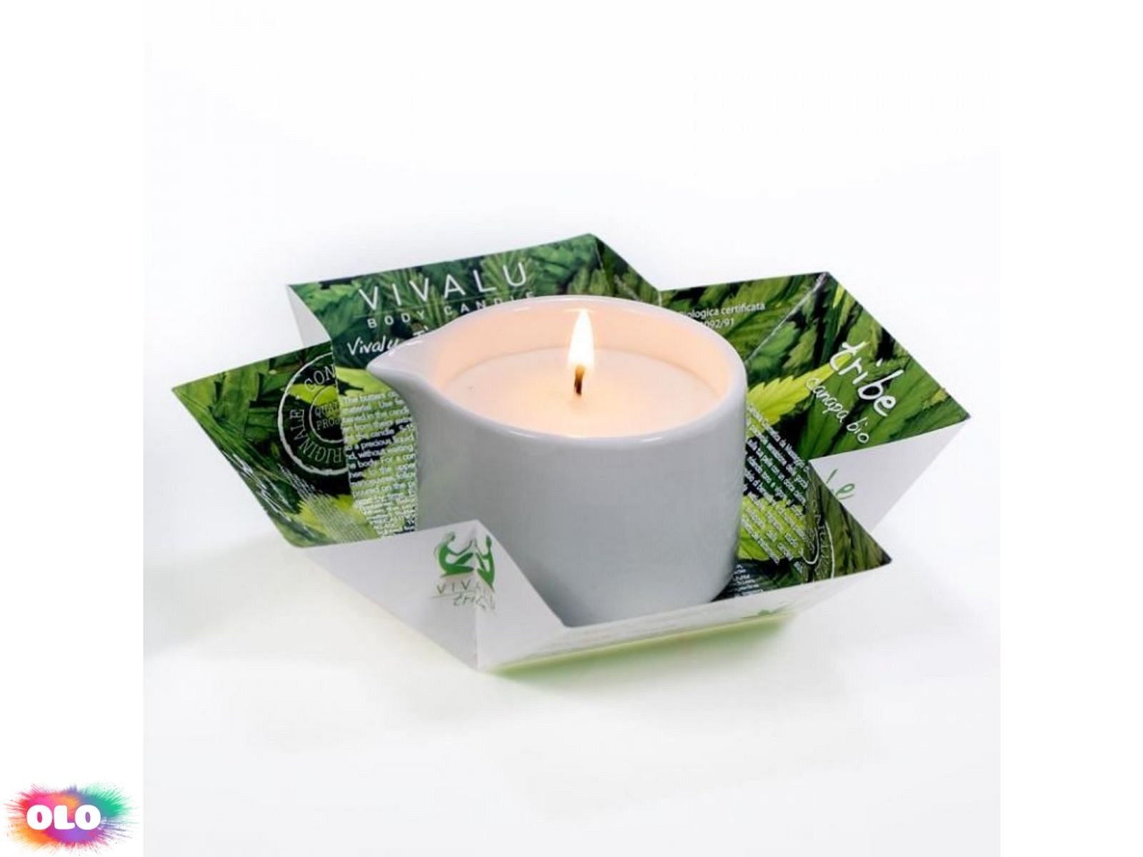 Vivalu konopná olejová masážní svíčka 100 ml Aktivní složky organického konopného oleje s masáží podporují mikrocirkulaci a hydrataci. Určeno pro všechny typy pleti, zejména pro citlivé.Se svíčkou můžete udělat 2-3 masáže celého těla. Opakované nahřívání svíčky nemá na kvalitu masážní emulze negativní vliv. Dno obalu lze použít jako odkapávací desku. FSC certifikované ekologické obaly. Porcelánový džbánek je hygienický a praktický. Je navržen tak, aby odváděl přebytečné teplo, zamezuje plýtvání a umožňuje snadné dávkování. Jakmile je produkt spotřebován, džbánek se stává vyhledávanou nádobou pro další použití. Kosmetické a masážní svíčky poskytují možnost relaxace a uvolnění nejenom v kosmetickém a masážním salónu, ale i v domácím prostředí. Návod na použití: Svíčku zapalte a nechejte hořet přibližně 10 minut. Vonné a masážní oleje i esence se rozpustí a svíčka je připravena k použití. Nalijte masážní olej na masírované místo popř. do dlaní a můžete začít provádět relaxační masáž. Kosmetická a masážní svíčka VIVALU se využívá v masáži pokožky jako zvlhčující balzám, obsahující aktivní složky různých receptur. Zanechá pokožku na dlouhou dobru jemnou a vláčnou.