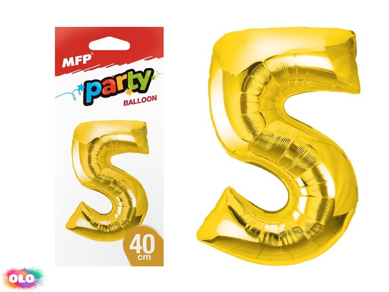 balónek č. 5 nafukovací fóliový 40 cm - zlatý 8000178