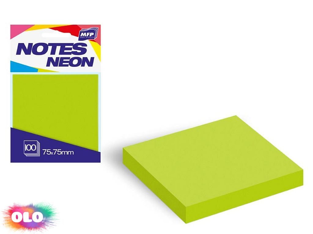 bloček samolepící 75x75mm 100 listů zelený neon 7500891