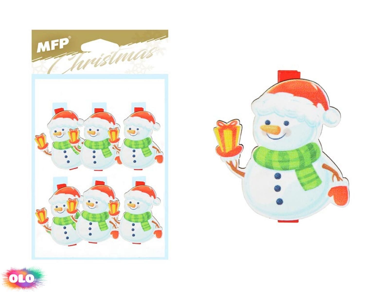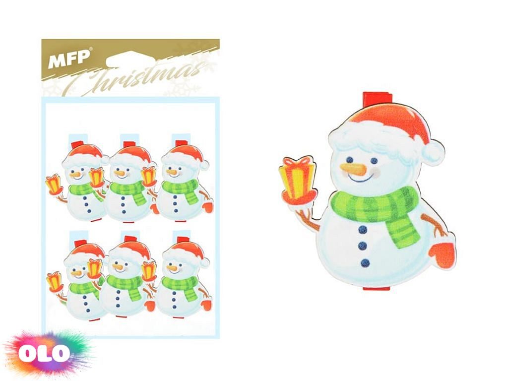 kolíček dřevěný sněhulák 4,8cm/6ks 8886095