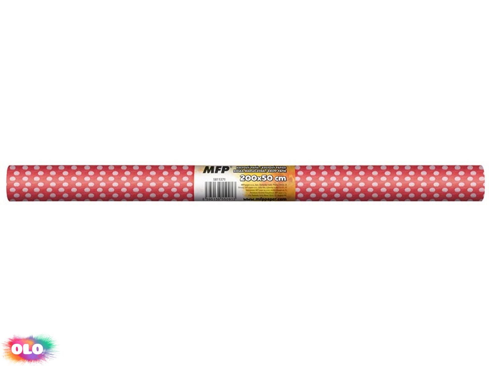 krepový papír role 50x200cm červený, bílé puntíky 5811371