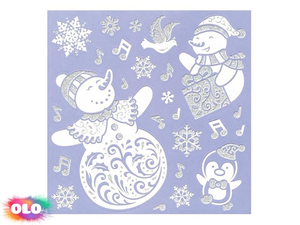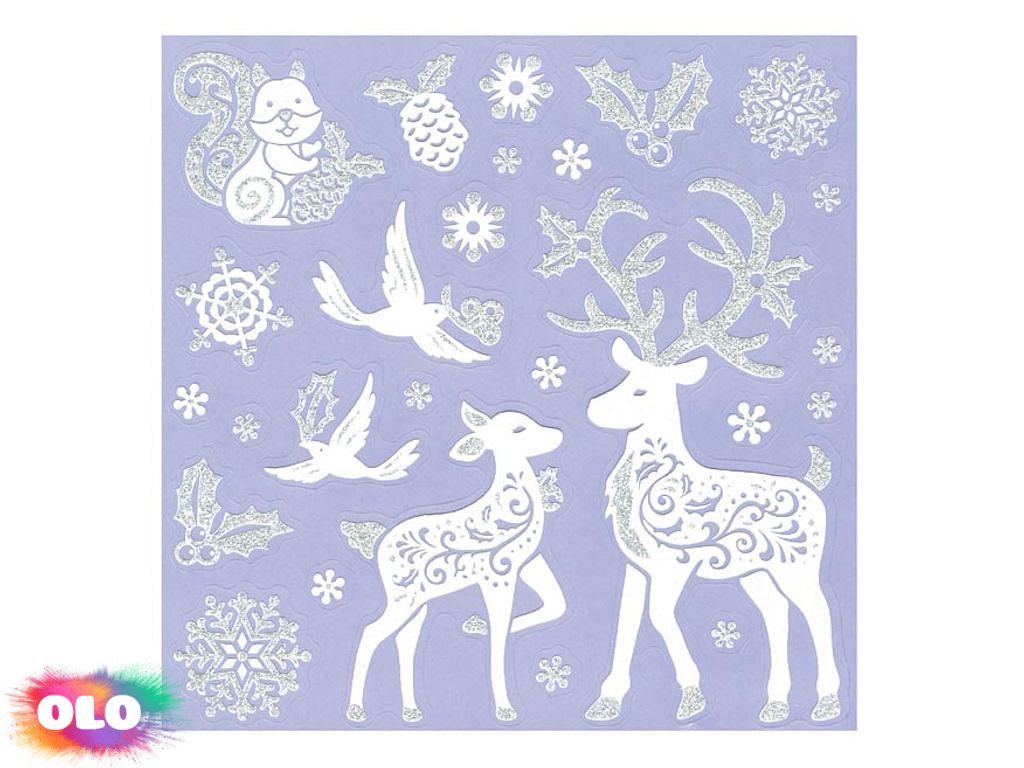 samolepky vánoční se stříbrným glitrem 180x180mm 8882327