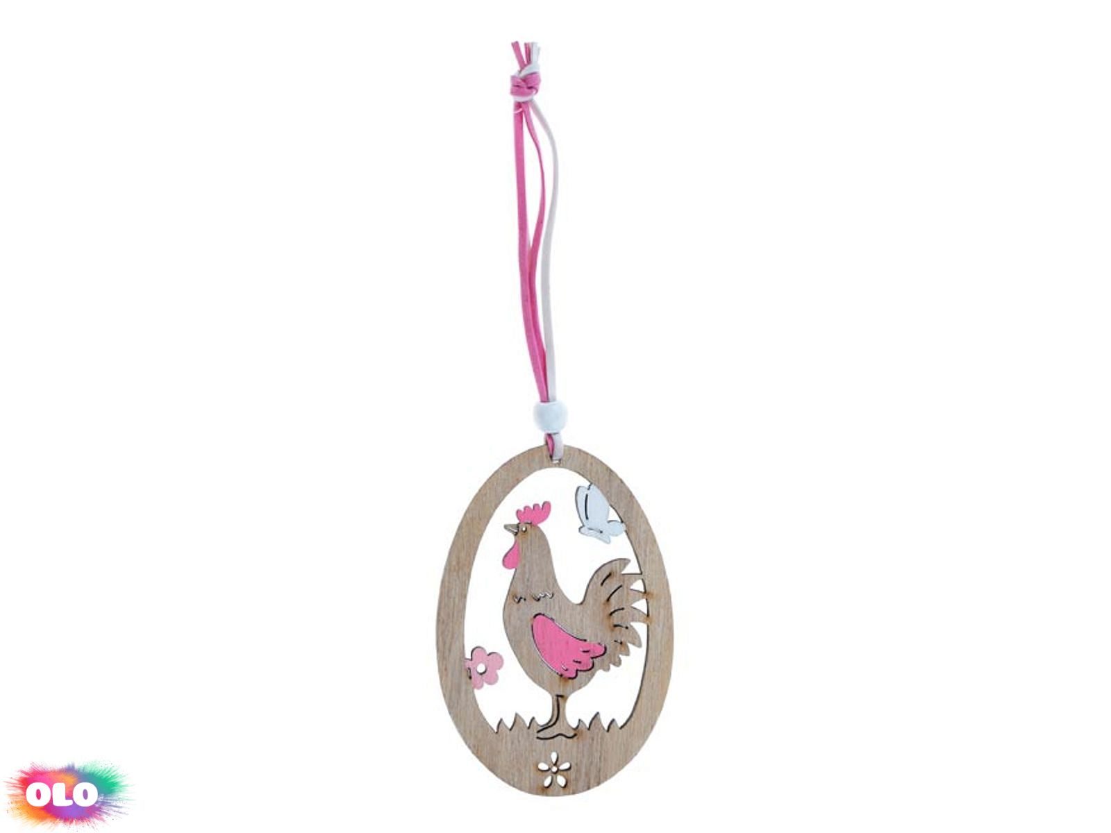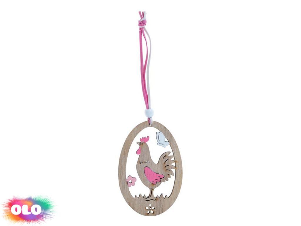 Vejce dřevo závěs 2D kohout 10cm 2221417